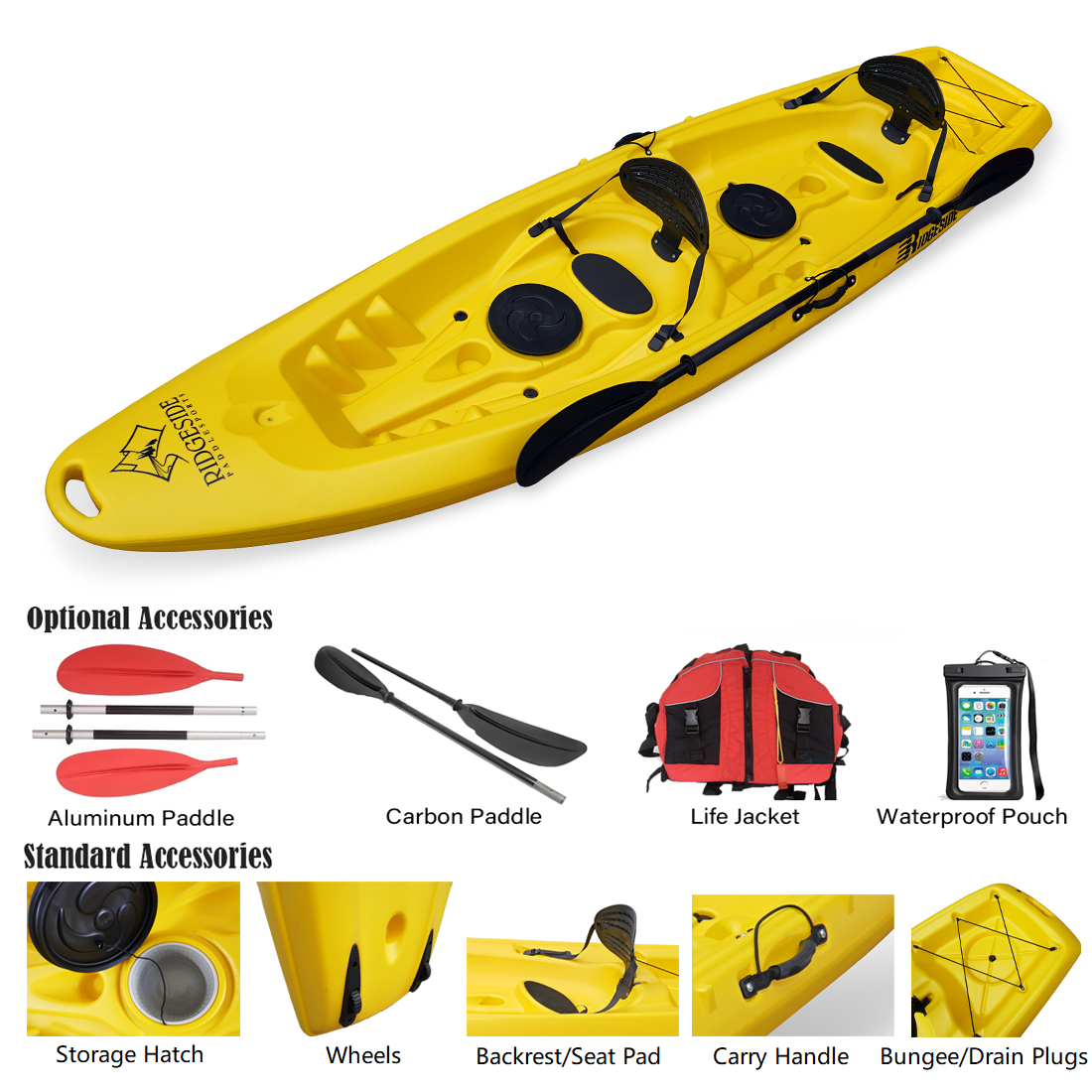 2: Rumpfdesign bietet ultra -Stabilität und großartige Verfolgung. Es unterstützt Solo, Tandem, oder Tandem paddelt mit einem Kind.