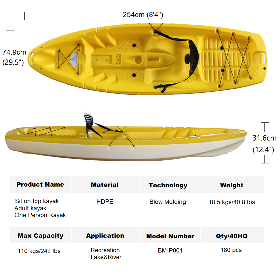 Fesili: 8'4 "SLADED DIDED KAIYAK BM-D001 samasama
