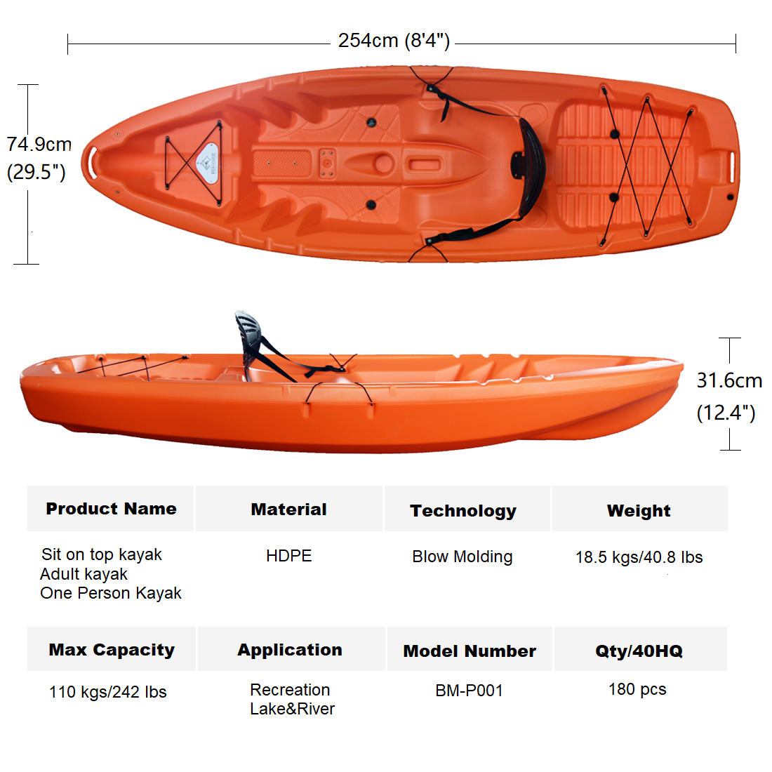 Fesili: 8'4 "SLOVED DIDED KAIYAK BM-P001 moli